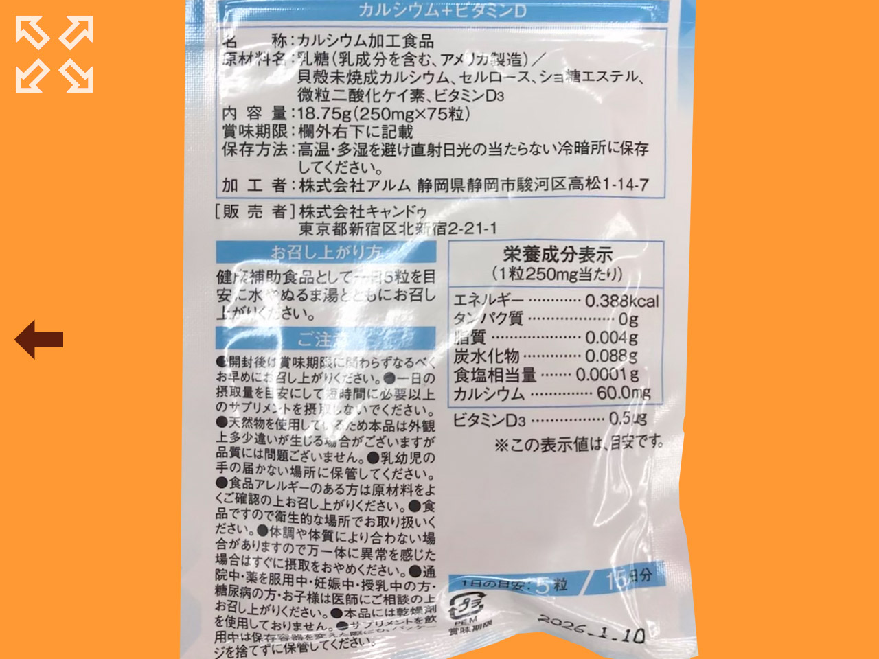 キャンドゥが取り扱っているサプリメントから、カルシウム加工食品。