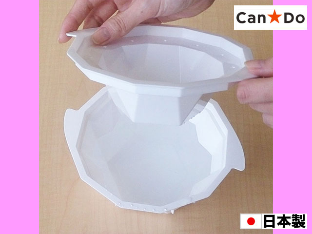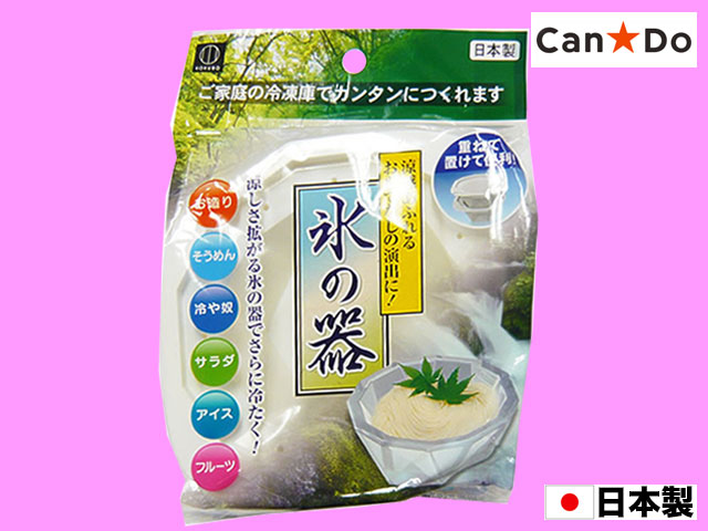 キャンドゥ 料亭等で盛り付けに使われる「氷鉢」を、ご家庭でも手軽に作れる製氷機。 本体に水を入れ蓋をかぶせたら、水平にして凍らせるだけで直径15cmほどの器が出来上がる。 そうめん、お造り、冷奴など、夏のお料理の演出にぴったり。 本体の積み重ねがきくので複数作成にも対応している。 発売元:小久保工業所製 (日本製)