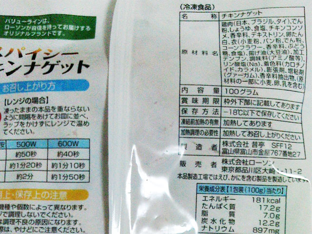 ナゲット独特の歯ざわりと共に胡椒の香りが口の中にいっぱいに広がり、1個2個3個と気が付いたら無くなってます。というわけで辛いのが苦手or健康志向の方以外にはオススメです。2個買っといたほうがいいですよ〜