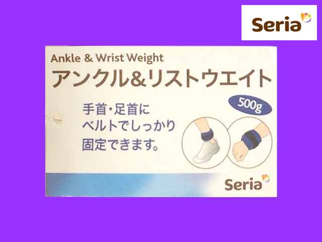 ■セリア エクササイズ用のウェイト。 足首、手首どちらにも使用できる。 重さは500g 手首用の250gタイプもある。 そこそこに思い負荷をかけてやる方が筋トレは効果的と言われてはいるが、無理せず体に合ったものを。