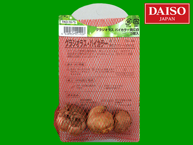 ■ダイソー 球根苗シリーズ グラジオラス・バイカラー 桃に白 ピンク地に白色の上品な覆色咲き。 香りもほのかで上品なので、室内に飾っても楽しめる。 花どき:7月~9月 草たけ:70~100cm 植え付け時期:3月~6月 植え付け場所:日当たりと水はけのいい場所 生産地:オランダ 品種:チェオプス 3球入り