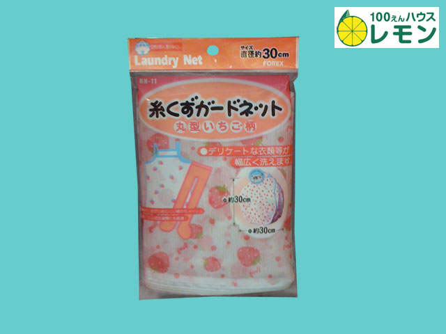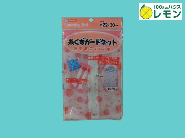 ■100えんハウスレモンほか(2015〜) お洗濯の際に、糸くずがつかないようにするネット角形。いちご柄。 50cm、30cm、ミニの3サイズ。 ①50cm × 50cm ②30cm × 30cm ③30cm × 22cm (中国製)
