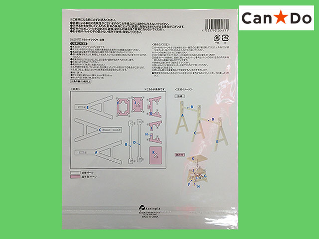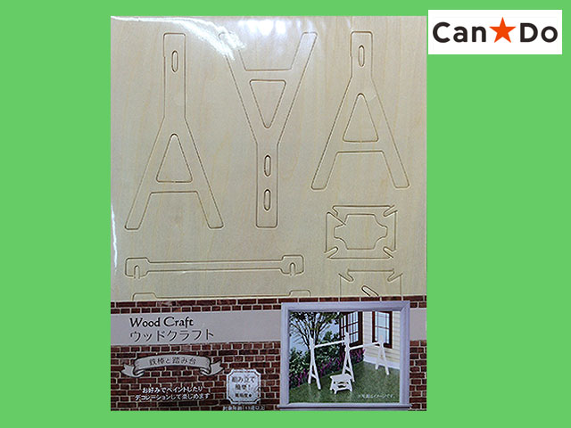 キャンドゥ(2016〜) ウッドクラフト。洋風シリーズから 庭アイテム 鉄棒と踏み台 一枚の板から各部品を抜き取って組み立てていく工作品。 洋風、和風等、各種シリーズとして揃っている。 抜き取った部品を付属の紙やすりで滑らかにしたら、設計図に合わせて順番通り組み立てると出来上がる。 ニス塗りや塗装をしてよりリアリティを出すことも。 パーツが大きいため難易度は低め。 本体サイズ 28.5cm×18.5cm  紙やすり1枚付き 組立難易度 ★ (中国製)