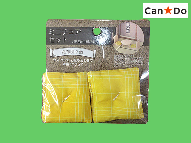 キャンドゥ キャンドゥウッドクラフト【和風シリーズ】にぴったりの、ミニ座布団2枚セット カラーは青と黄色の2種。 同じ系列のコタツ布団がある。 発売元:株式会社カリンピア (中国製)