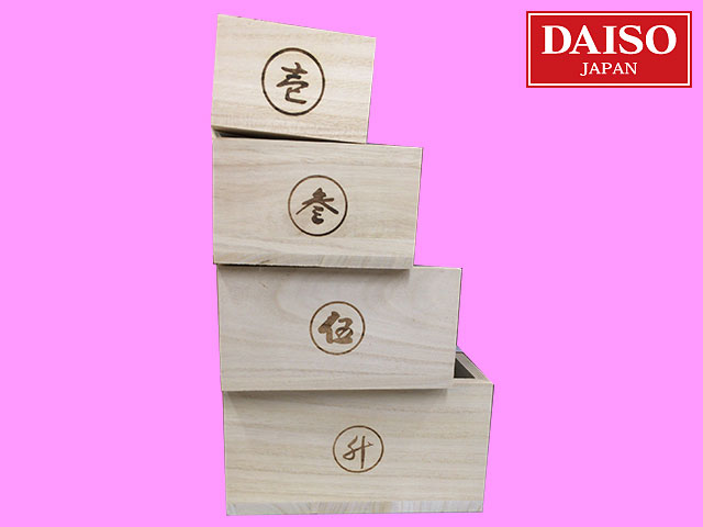 ■ダイソー 手づくりの枡(マス) お米の計量、豆まき、枡酒、ディスプレイ用にしても良い。 一号 三号 五号 一升 どのサイズも、ひとつ100円。