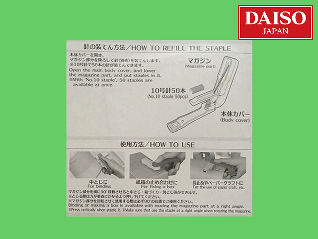 ■ダイソー(2015〜) 針部分が回転するホッチキス。 通常のステープラーでは、なかなか叶わなかった背表紙留めが簡単に出来る。 もちろん普通の使い方も出来る。 とじ枚数10枚