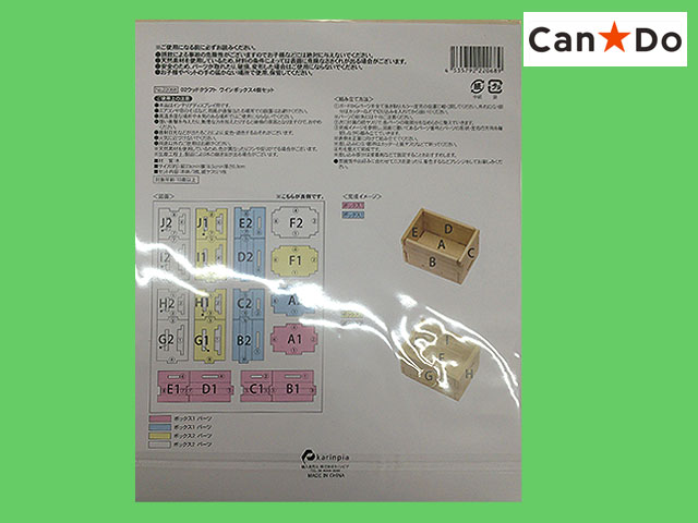 ■キャンドゥ ウッドクラフト。ヨーロピアンシリーズから ワインボックス4個セット 一枚の板から各部品を抜き取って組み立てていく工作品。 抜き取った部品を付属の紙やすりで滑らかにしたら、設計図に合わせて順番通り組み立てると出来上がる。 本体サイズ 28.5×18.5 紙やすり1枚付き 組立難易度 ★ ※在庫限りで販売終了なので、欲しい方はお早めに。 (中国製)