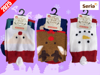 セリア/キッズ ショートクルー丈ソックス《3Dクリスマス柄》*3種